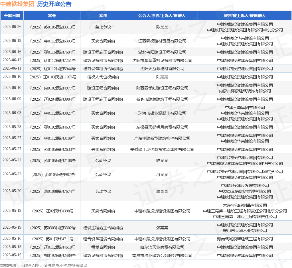 本站消息金斧子配资金斧子配资,根据天眼查APP显示,近日公布了一则中建铁路投资建设集团有限公司作为原告/上诉人的开庭公告,详细内容如下: